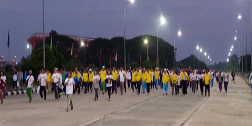 The officials from the Department of Sports and Physical Education provided water bottles and nutritional snacks to the participants. The mass walk is set to be held every Saturday in December with the active participation of Members of the State Administration Council, ministerial staff and their family members.