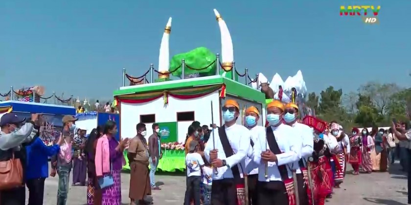 Tabaung Ground in front of Uppata Sandi Pagoda in Nay Pyi Taw was alive with the visitors, students and national races on Sunday, as the Decorative Floats from the Union Territory, Regions and States, taking part in the Diamond Jubilee Union Day Celebration on display for public.