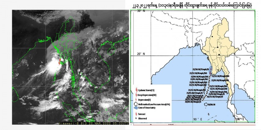According to the observations of the Department of Meteorology and Hydrology 11:30 am M.S.T on Tuesday, the deep depression over North Andaman Sea and adjoining East central Bay of Bengal has moved Northwards and now crossing Ayeyarwady Region near Hainggyikyun.