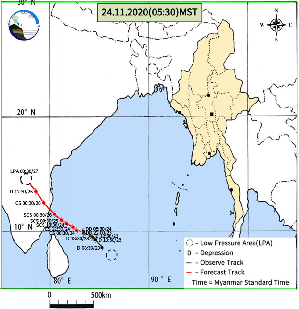 It is not moving towards Myanmar coasts, the present stage of the Deep Depression is coded yellow stage. The Deep Depression is likely to intensify into the Cyclonic Storm during next (6)hrs and Severe Cyclonic Storm during next (24)hrs and move Northwestwards.