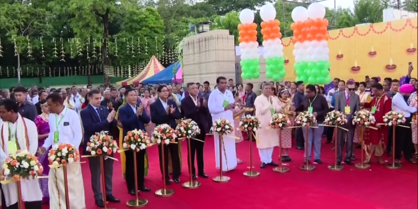 After the ceremonial ribbon cutting at the archway, the Prime Minister and wife were welcomed to the celebration according to the Hindu traditional rituals. Then, the Prime Minister and the Indian Ambassador to Myanmar formally opened the celebration, and took a tour to the booths displayed by the Hindu Associations and tribal groups.