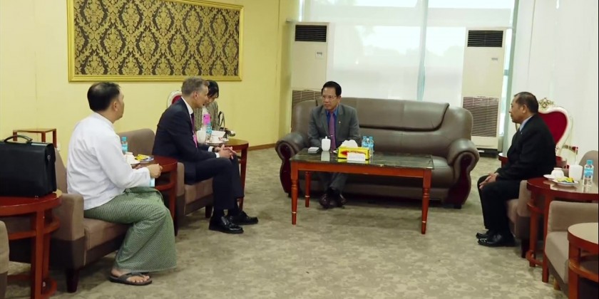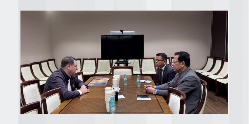 In the afternoon, the Union Minister met with Mr. Sergey Vladimirovich, the head of Southeast Asia affairs at Roscongress, at Plaza Garden Hotel, where they held frank and open discussions on the rapid implementation of Russia-Myanmar media cooperation.