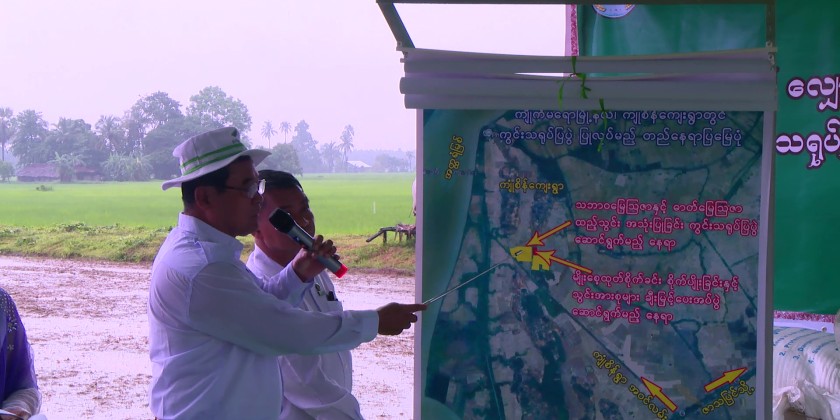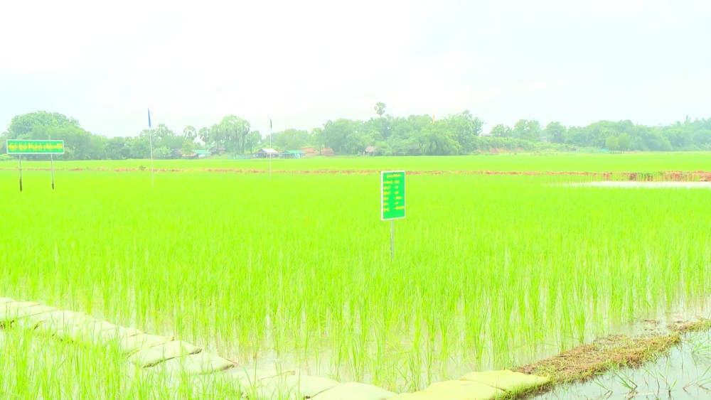 Mon State Chief Minister U Aung Kyi Thein, accompanied by State Ministers, attended a demonstration event showcased rice cultivation using the Drum Seeder method aimed at reducing manual seed scattering practices, along with a ceremony to distribute inputs to RS-CS seed-producing lead farmers held in Kyon Sein Village, Kyaikmaraw Township on July 8.
