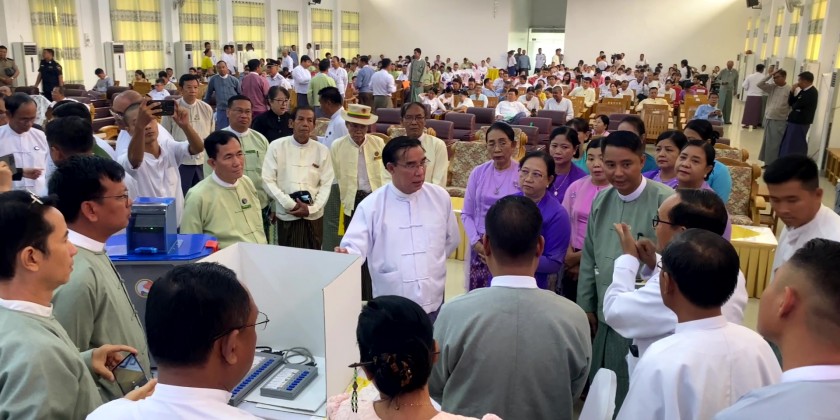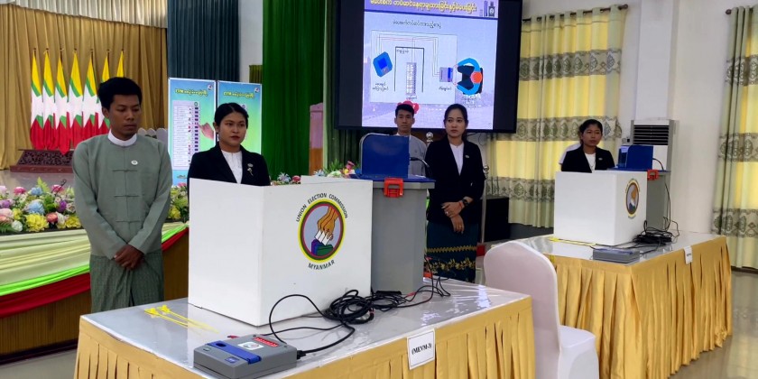 The demonstration of Myanmar Electronic Voting Machine- MEVM and trial voting was held at the City Hall of the Bago Township with the attendance of the Bago Region Chief Minister U Myo Swe Win on Thursday morning.