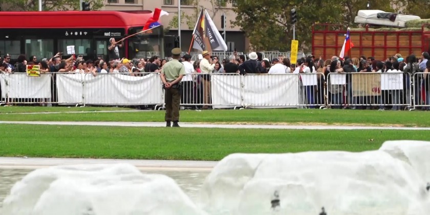 The demonstrators held placards blaming the United Nations and the pharmaceutical companies for the pandemic. Chile has some of the strongest restrictions, with mandatory masks indoors and outdoors, a mobility pass for access to certain spaces and activities, and strict protocols for foreign tourists.