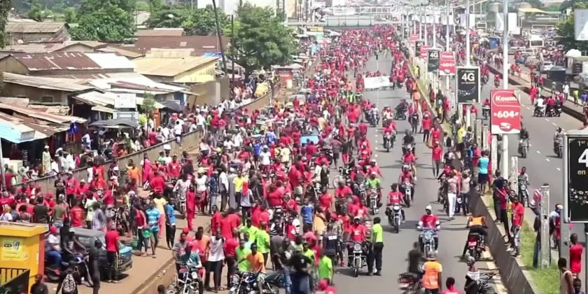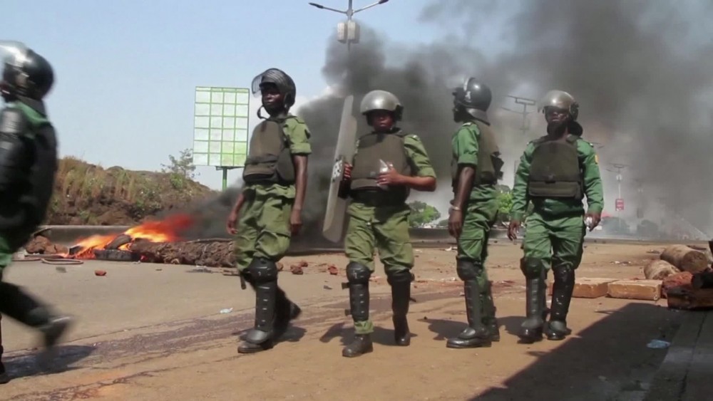 Demonstrator killed as Guinea protesters torch bus, clash with riot police