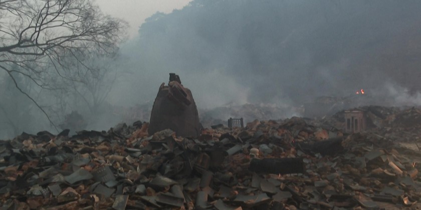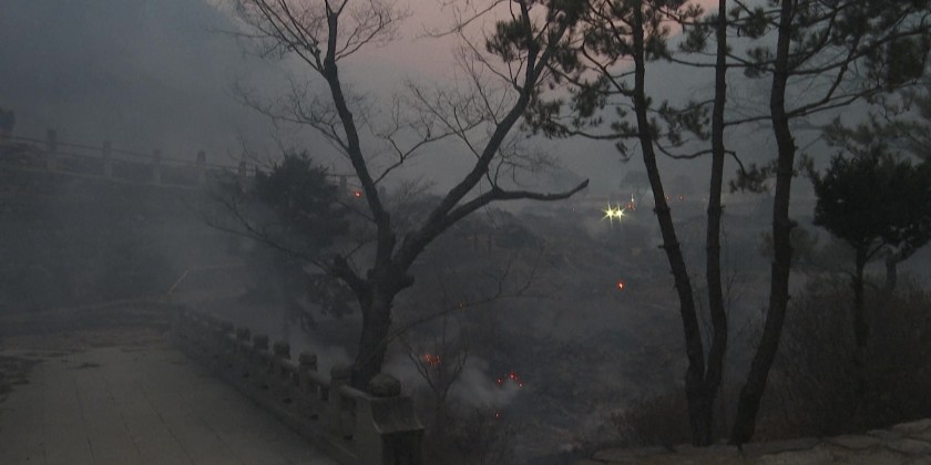 The 1,300-year-old Gounsa temple in Uiseong County, South Korea, has been badly damaged by the wildfires. Most of the buildings of the temple, have been destroyed and the main building in the complex remains largely undamaged.