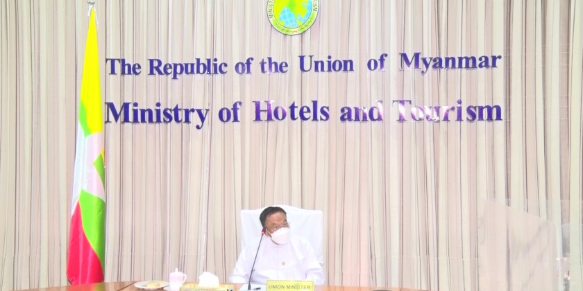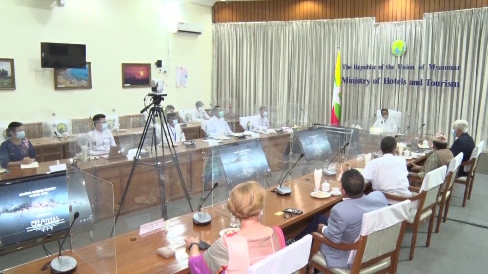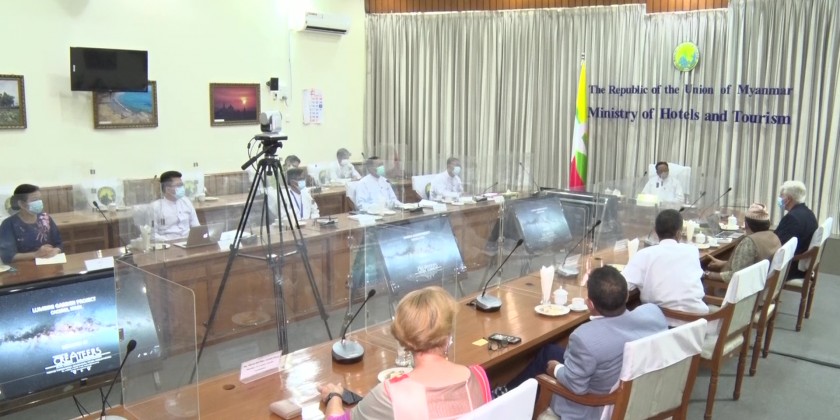Union Minister for Hotels and Tourism U Htay Aung received a delegation led by President of Lumbini Garden Foundation Jose Maunel Vilanova Aleman at the Ministry in Nay Pyi Taw on Tuesday concerning the Great Maha Karuna project to be implemented in Spain with the aim for developing a Buddhism-based Asia-Europe tourism industry.