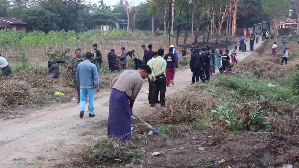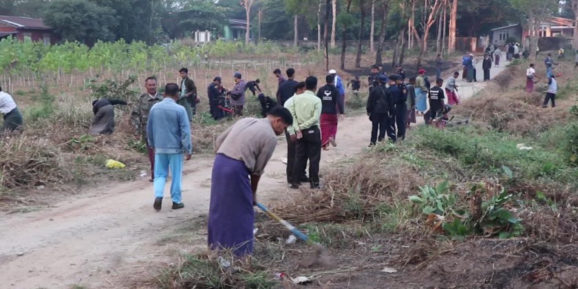 The departmental personnel, members of Myanmar Police Force, Fire Brigade members, social organizations and local residents took part in the cleaning and greening activities in the school compound. Then, the Chief Minister and party inspected the classrooms and school buildings, and coordinated requirements for long-term durability of the school buildings and the renovation of ceilings and roofs.