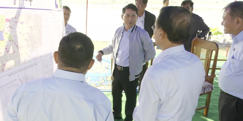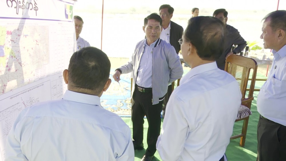The Union Minister for Agriculture, Livestock and Irrigation U Min Naung accompanied by Deputy Minister U Bo Bo Kyaw and officials inspected the inflow water storage of Kyeenikan Lake which have been over 700 years old and contribution of irrigation to the local agriculture in the morning on 5th February and gave the necessary instruction to the officials.