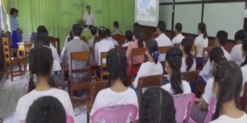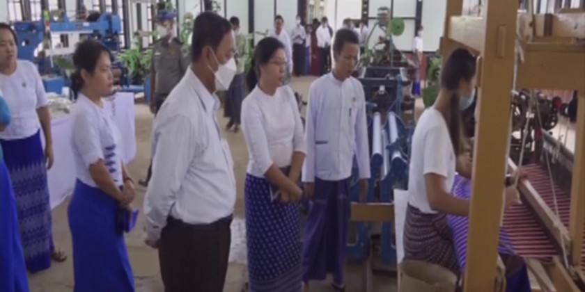 In the morning, the Union Minister and party visited the Weaving and Vocational Training School in Mudon Township. Afterwards, the Minister and party met with local people and members of the Green Emerald Project and discussed agriculture, livestock and trade activities are monitored.
