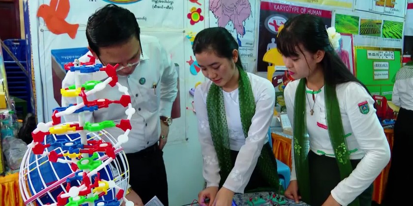 During the event, 5 sets of DTH Disc and 15 sets of DVB T2 Set Top Box were provided to Basic Education High School and Middle Schools in Myaungmya Township and 15 million kyats cash assistance for construction of a library.