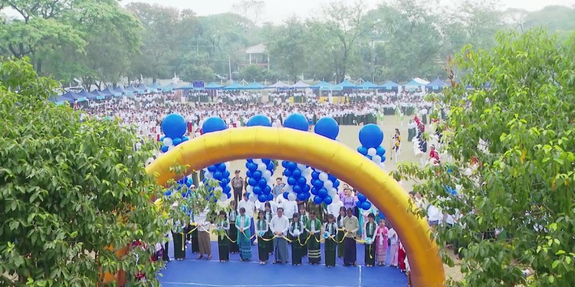 The event was organized by the Yangon Regional Government in cooperation with the Information and Public Relations Department and the Basic Education Department. Chief Minister U Soe Thein attended the event and delivered an opening speech.