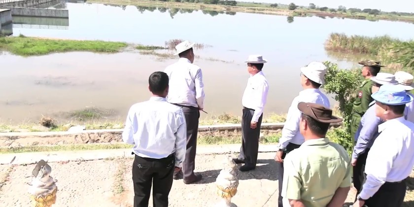 In Thayasu Village of Pyinmana Township, the Council Chairman inspected the thriving plantations which were replanted on the farmlands damaged by flood. On arrival at Paung Laung Diversion Weir, they inspected the irrigation process to over 21,000 acres catchment area, and plan to generate hydropower electricity using the surplus water.