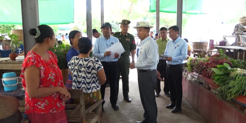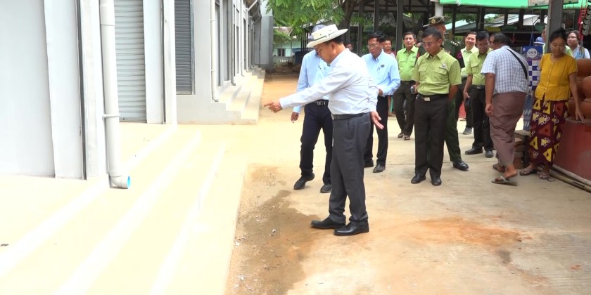 Sagaing Region Chief Minister U Myat Kyaw and officials visited the construction site of the new Bandhula Market in Monywa on Saturday. The market is a two-story RC building, 279 feet long and 24 feet wide, with 44 shop units. The Chief Minister instructed to ensure quality construction, proper water and electricity supply, clean surroundings, and good drainage systems. He also inspected the progress and met with vendors at the site.