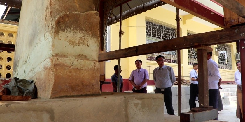 At Shwe Maw Daw Pagoda, they reviewed the all-round renovations and gold plating process, and instructed officials to emphasize on safety measures. They then visited the project site at Hanthawaddy Ancient City Wall, supervising drainage improvements and construction safety.