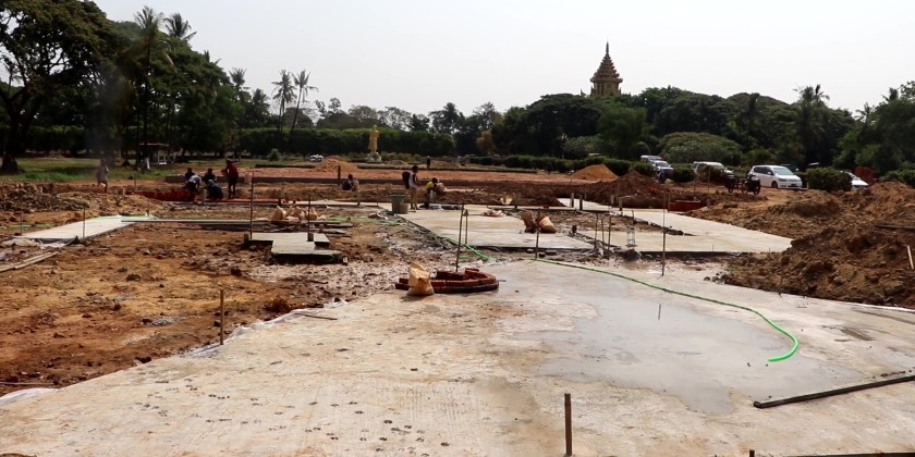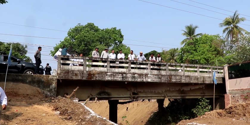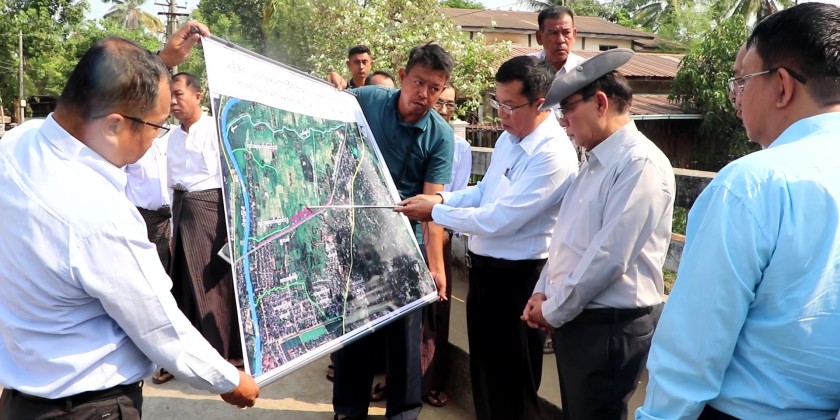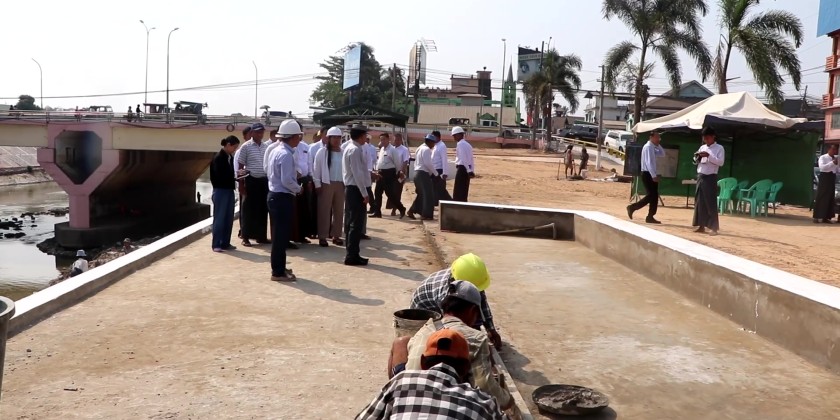 On arrival at Kyauk Kyi Su Ward flood control project, the Chief Minister instructed for ensuring minimal impact on local homes and proper water drainage into the Bago River. They also inspected the bored pile-based retaining walls and new park construction along Yangon–Mandalay Road Bridge area, and emphasized for timely completion and proper connection with existing structures. They also monitored the restoration of the historic site according to its original design near Thainni Gate.