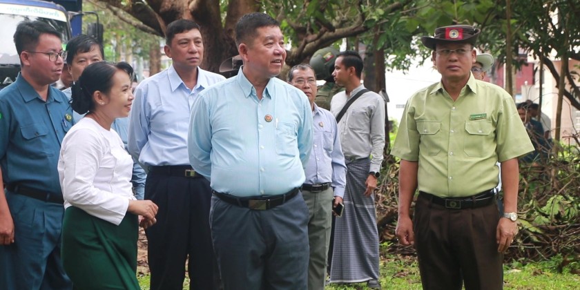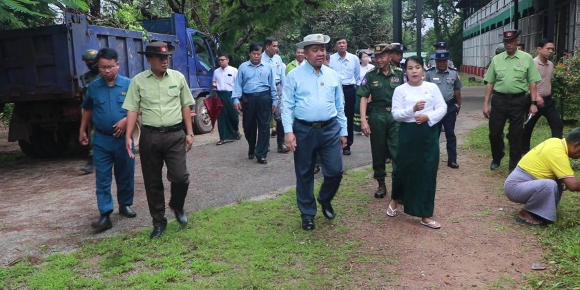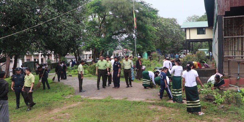 On 9th August, Mon State Chief Minister U Aung Kyi Thein accompanied by concerned officials visited No.1 Basic Education High School in Mawlamyaing Township and oversaw the collective cleaning measures carried out by members of Myanmar police force, fire brigade and social organizations and residents. There, the Chief Minister instructed on facelifting of the school, greening of the school compound and coordinated necessities.