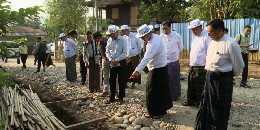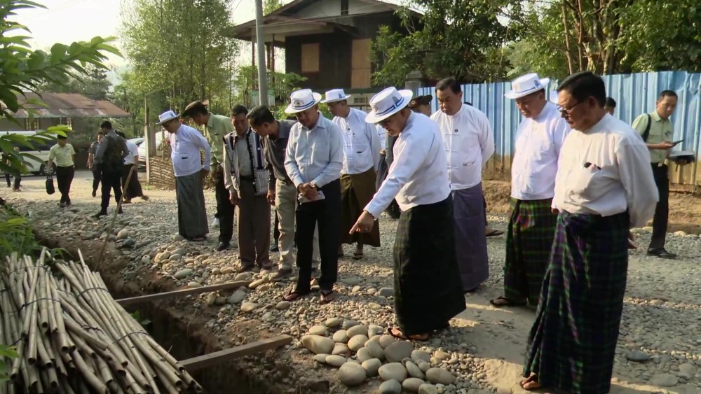 Kachin State Chief Minister U Khet Htein Nan, along with state ministers and officials, inspected development projects in Shwe Set Ward on Friday. They oversaw the road upgrades, proper drainage systems, and brick walls at No. 2 Basic Education School. The Chief Minister urged officials to ensure proper planning and timely completion.