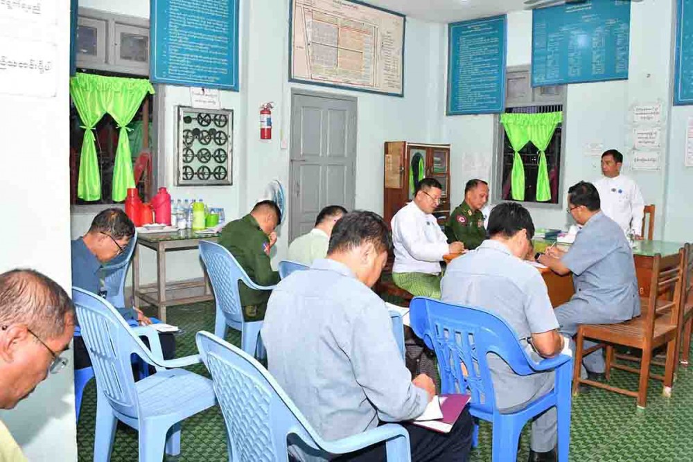 Nay Pyi Taw Council Chairman and concerned officials commenced their inspection at Myoma market and inspected the cleaning and beautifying works of the market and stalls in the market. After inspection, they met with the relevant officials from Township Management and Development Committees and heard reports on the market cleaning tasks.