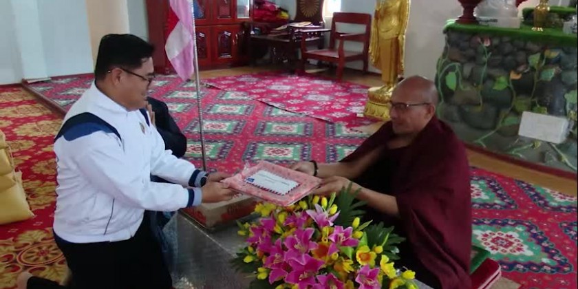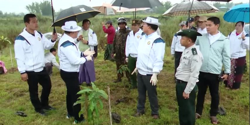At the Road Department, the Chief Minister heard reports on progress of construction new road axis to Mt. Phonkanrazi to develop eco-tourism industry in PutaO area. On the 1st of May, the Chief Minister took part in the Pre-monsoon tree planting ceremony along the Nam Htwan River, where the participants grew 400 saplings. They then attended the opening ceremony of new concrete road, connecting the Technical Institute. They also visited the Hilly Region Missionary Monastery and donated foodstuff for the monastery. At PutaO Airpot, they oversaw the landscapint works for greening environs.