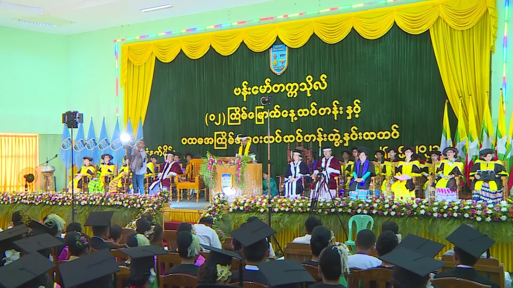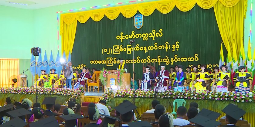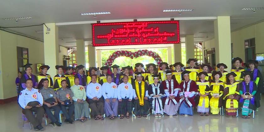 Kachin State Chief Minister U Khet Htain Nan together with officials attended the 12th Graduation Ceremony of Bamaw University on 27th May.