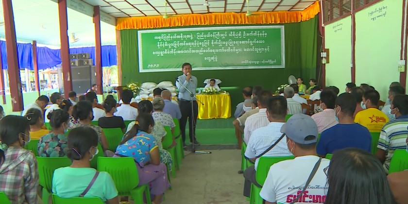 Next, the Chief Minister met with the members of Tarmailon  Village Agriculture and Livestock Implementation Committee under the State Economic Promotion Fund at the village monastery.  During the meeting, the Chief Minister urged all to participate in the projects for its success. The official of Kachin State Department of Agriculture explained about the distribution of rice species to the farmers who are engaging in the agriculture tasks with the State Economic Promotion Fund.