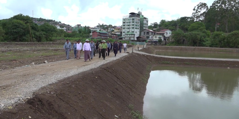 Following this, the Chief Minister and party inspected condition of Lay Mile Kyawe - Shwe Nyaung road, Ga Naing Lake 3 and installation of sluice gate, as well as the designated area for fencing and tree planting. They also inspected the upgrading of Yay Htwae Oo road, including the drainage canal and coordinated the needs.
