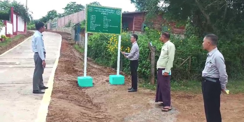 In Mong Pyin, the Deputy Minister met with the staff from four departments under the ministry and instructed for timely completion of the ongoing projects for respective fiscal years. They later inspected the damage of office fence near Namt Pyein Creek, and 600 ft long concrete road in Sun Taung Village.