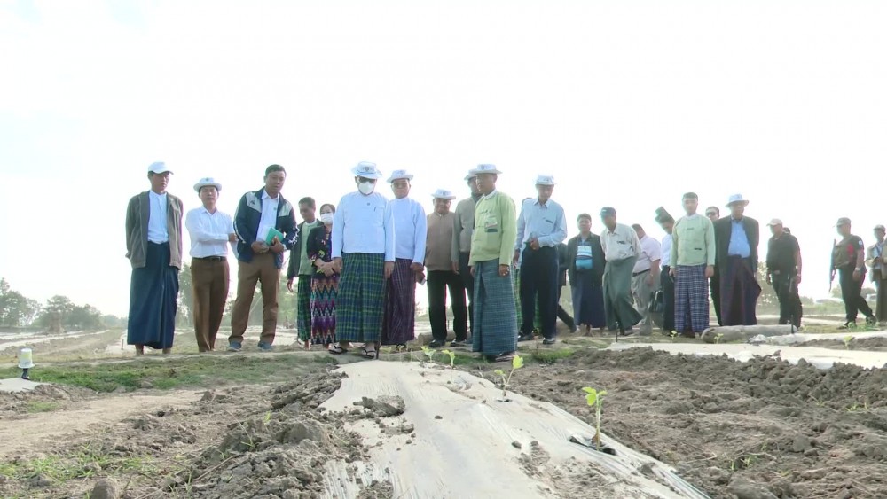 Kachin State Chief Minister U Khet Htein Nan on 18th January visited Khat Cho Village-tract in Wai Maw Township to oversee the cultivation of double cropping in Kanton Field.