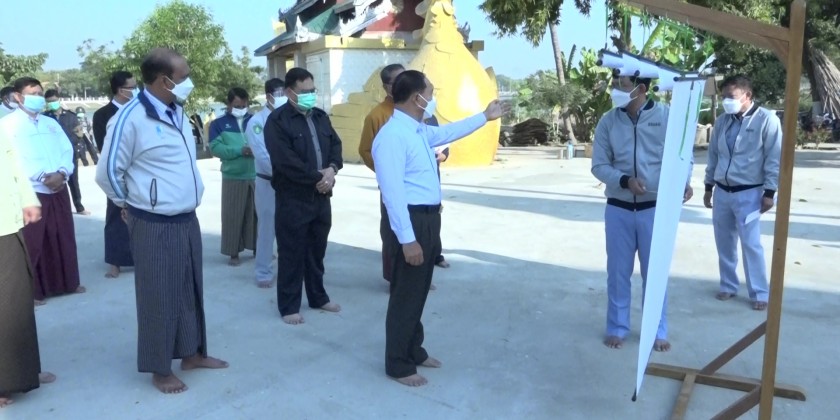 Sagaing Region Chief Minister U Myat Kyaw, together with the officials, on 27th February, visited YarPyae KatKyaw Pagoda in Kanthaya Kyun of Monywa. Officials reported on the renovation works of the pagoda and construction of the retaining wall.