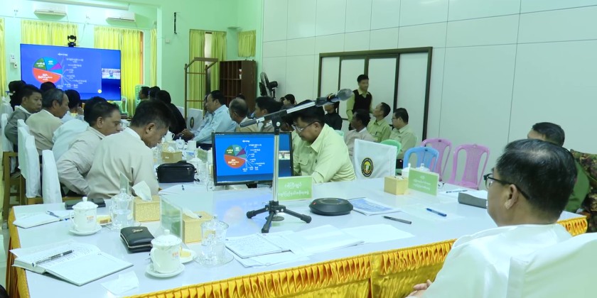 The meeting also covered reports on the monsoon paddy harvest status, the monsoon paddy harvest, food security plans in Putao and Tanai, oil crop production for 2024-2025, and strategies for expanding oilseed acreage and achieving self-sufficiency in five years.