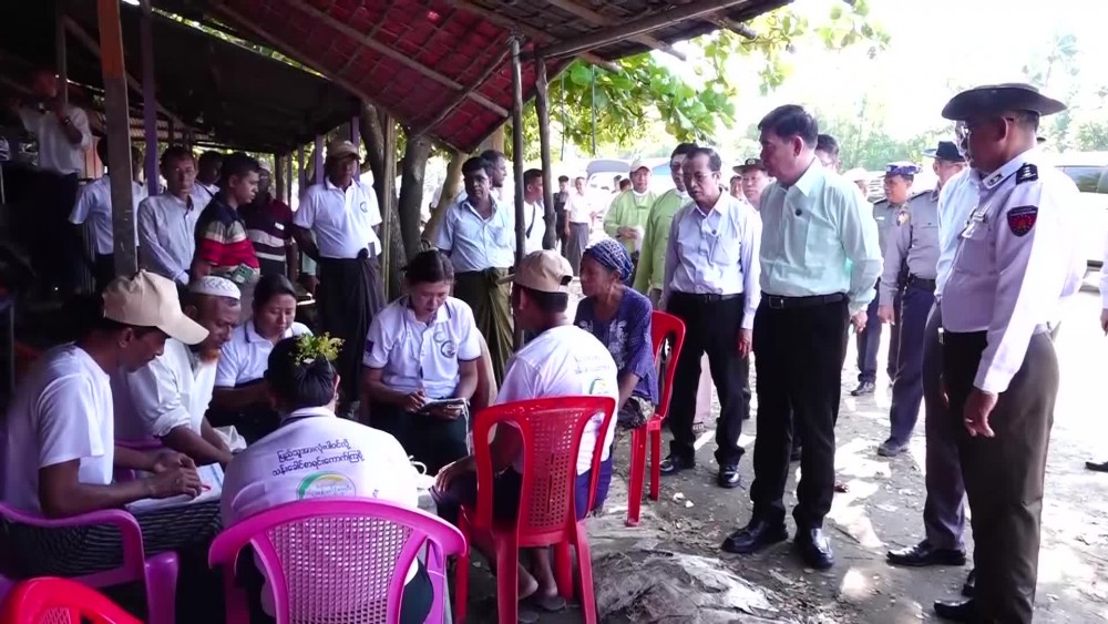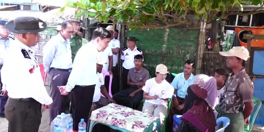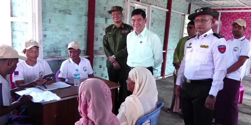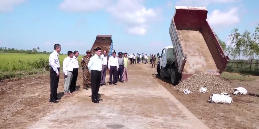 At Thetkaypyin village and KhaungDokeKar IDPs camp, the Chief Minister and party oversaw the census collection works, cordially greeted the locals, heard reports by the officials and coordinated the requirement. Next, the Chief Minister and party inspected upgrading and repairing processes of Thetkaypyin village road and Sittwe-Palinpyin road as well as the digging of drainages, being implemented by the Rakhine State Government fund.