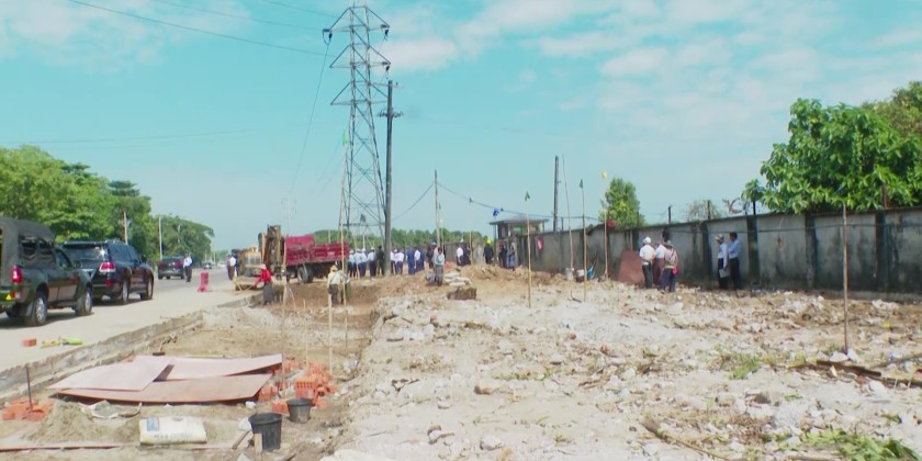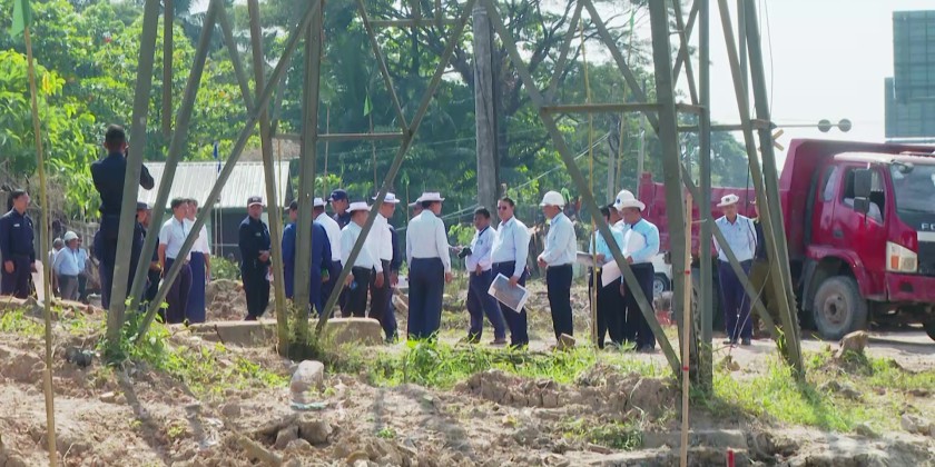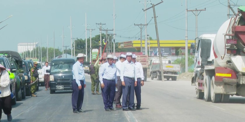 They first inspected the extention of No.(4) Highway road near Danyingone Junction as well as the relocation andnew installations of the electric power cables and electric power posts. They also inspected the concrete paving of road and stringing of electric cables.