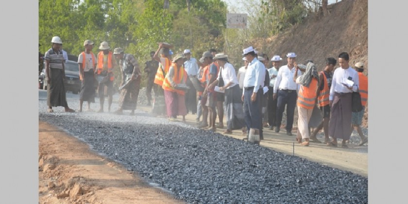 Yangon Region Chief Minister U Soe Thein together with the regional ministers, inspected the tarred paving on Taikkyi-Phaunggyi-Bago Road on Saturday. With the allotted budget of 2023-2024 fiscal year by the Regional Government, the Road Department is undertaking the project. Officials reported on progress of tarred paving works, proper flow of drainage system and construction of retaining walls.