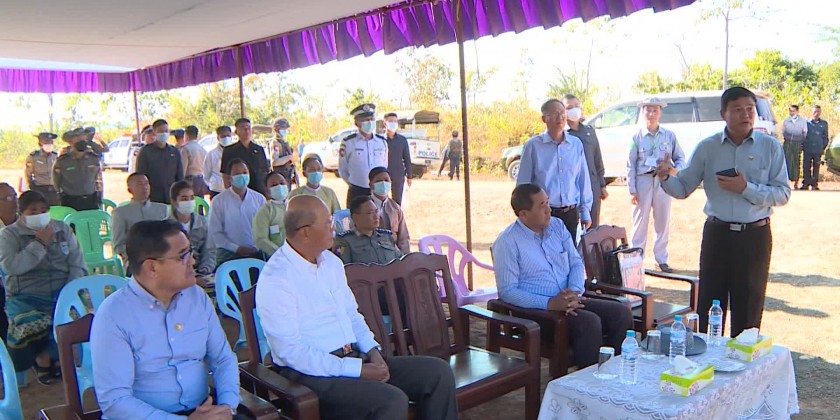 Member of the State Administration Council U Jeng Phang NawTaung, together with theUnion Ministers and Kachin State Chief Minister inspected the chosen for construction of Sports and Physical Education Institute, the University of Computer Studies and the department offices in Maw Phaung Village-tract of Myitkyina on Sunday.