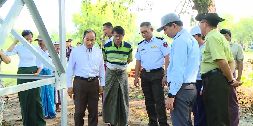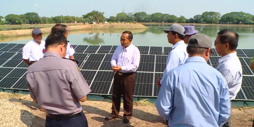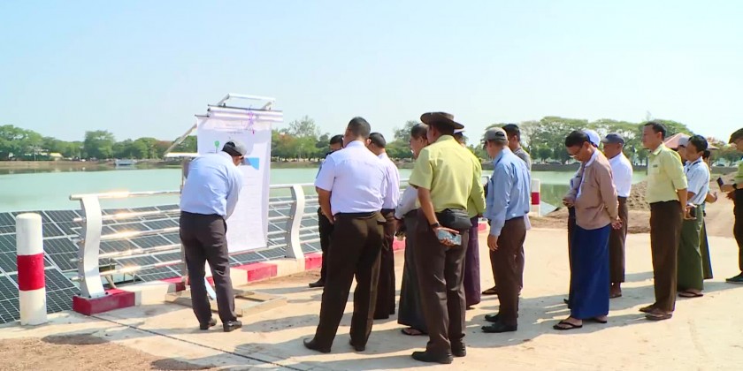 In order to get water sufficiency for the local residents in Monywa Township, the chief minister and party inspected the installation of solar panels for pumping water from Chindwin river into the West Kantharyar pond to prevent shortage of water in summer time.
