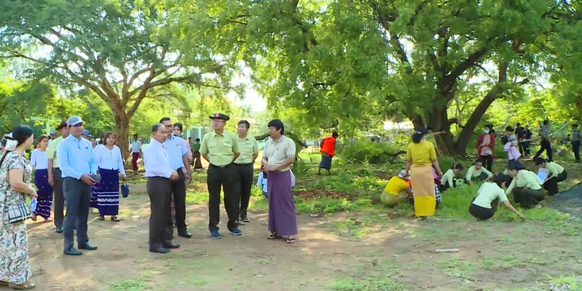 Sagaing Region Chief Minister U Myat Kyaw inspected the work undertakings of cleaning activities at No.2 BEHS (Ahlone) in Monywa Township on 27th of May.