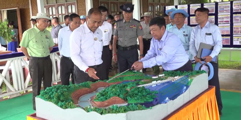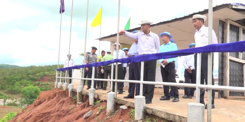 Shan State Chief Minister U Aung Aung, accompanied by concerned officials conducted a field inspection to the Upper Kengtawng Hydropower Plant in Namtsam District of Shan State (South) on May 16.