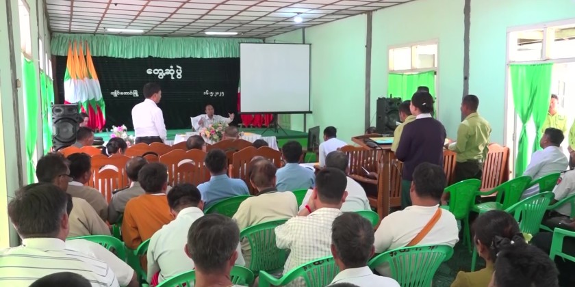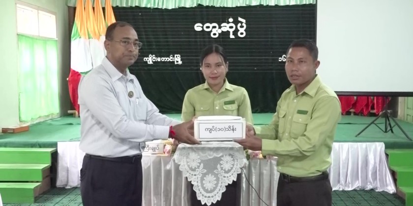 The Chief Minister and party later met with the township-level departmental officials and town elders at the Kengtawng General Administration Department. They heard reports on the region’s conditions and needs, followed by the presentation of cash prizes to township departmental personnel.