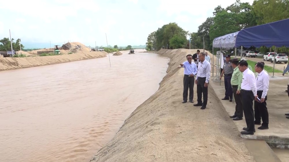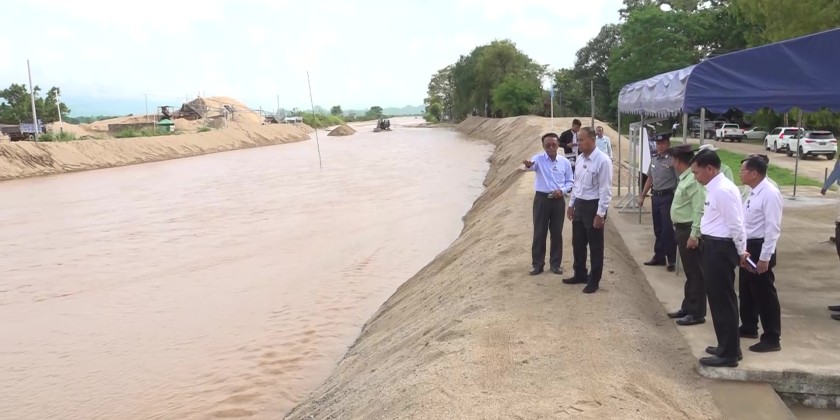 Shan State Chief Minister U Aung Aung, accompanied by concerned officials, visited the silt dredging and embankment construction activities in Nant Khin Creek near Keng Fong village in Keng Tung Township on May 15.