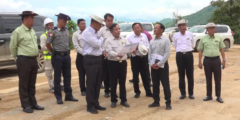 They heard reports on widening 29 sections of the Takaw–Mong Pyin Road to 34 feet at the Mong Pyin Construction Department. The Chief Minister stressed building to standard, preventing erosion and avoiding road disruption. They then inspected the project site and drainage construction.