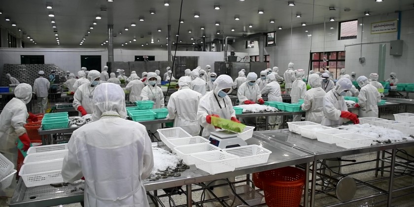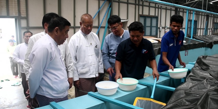 They then arrived at Prawn Breeding Farm of Pyae Phyo Tun International Company Limited, and inspected the breeding of sea water prawn and production process.