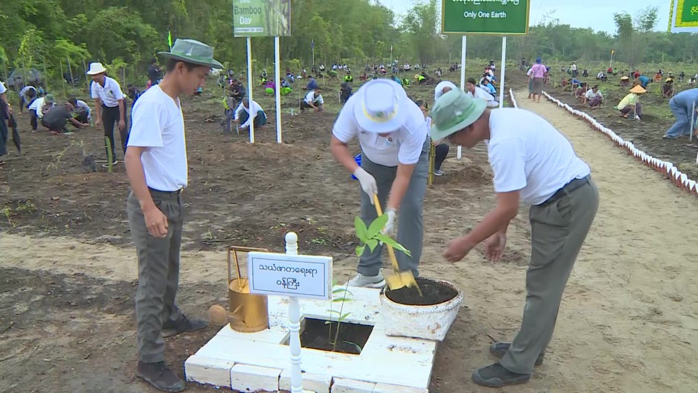 At the ceremony, Kachin State Chief Minister U Khet Htein Nan, State/District and Township level departmental officials and other related officials planted over 600 bamboo saplings on 3.7 acres land plot.