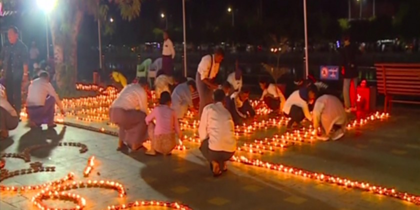 At night, the Thadingyut Lighting Festival was organized at Yadanapon Garden in the eastern part of Mandalay Moat, along with the charity feast and entertainment programs. During the festival 5,000 candle lights were lit while oil lamps were floated and hot-air balloons were released.