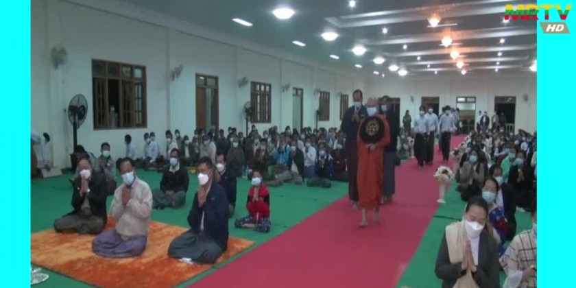 The congregation led by Rakhine State Chief Minister Dr. Aung Kyaw Min received the Five Precepts from Ti-ni- Siman Oak Choke Hmue MahaNayaka Sayadaw.