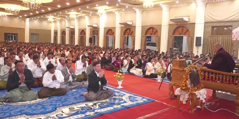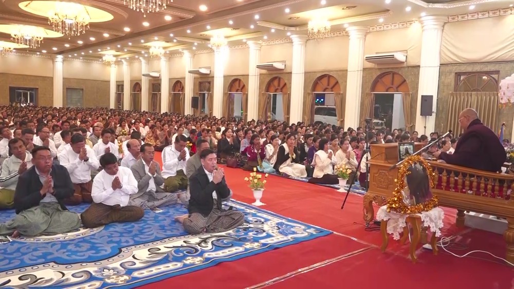 A Dhamma Puja ceremony for the Chancellor of the Rakha Pura Buddhist University and Mrauk-U Dhamma Center, Presiding Sayadaw of Yadanar Mar Aung Tawya Meditation Centers, Mrauk-U Sayadaw Vana Vasi Ashin Vayaminda , was held on the evening of January 28 at the U Ottama Hall in Sittwe. Rakhine State Chief Minister U Htein Lin and his wife, State Chief Justice, State Government members and their wives, department officials, and guests attended the Dhamma Puja ceremony.