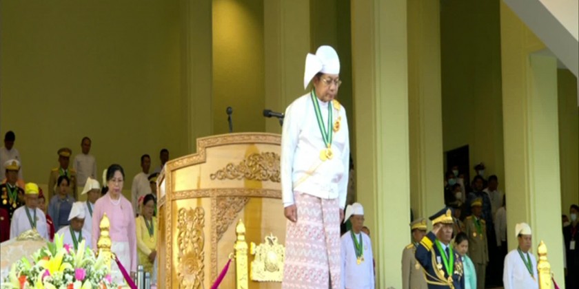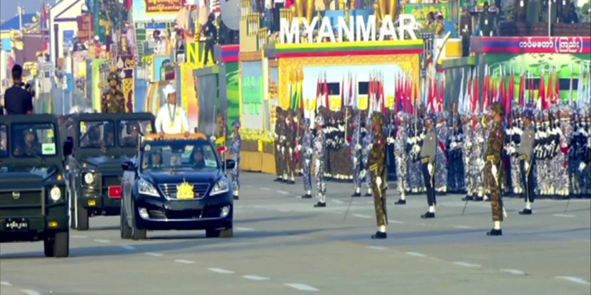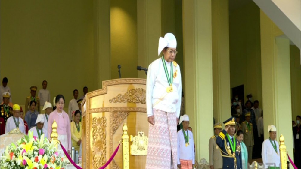 Chairman of the State Administration Council Prime Minister Commander-in-Chief of Defence Services Senior General Thadoe Maha Thray Sithu Thadoe Thiri Thudhamma Min Aung Hlaing delivered an address at the ceremony to honour the 75th Diamond Jubilee Independence Day 2023 at the Grand Military Parade Ground in Nay Pyi Taw.
