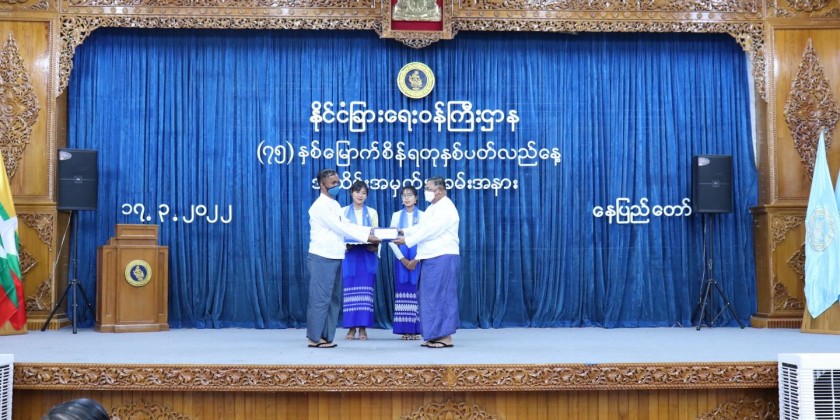 Then, the staff officers and low-rank employees who dutifully served the duties for the country and the ministry, the staff who successfully completed the 2020- 2021 training of Central Institutes of Civil Service (CICS) (Lower and Upper Myanmar), best writer for Thar Kaung Taman Magazine for 2021, winners of debating contest and impromptu talks were awarded and other funfairs were organized following the COVID-19 health rules.