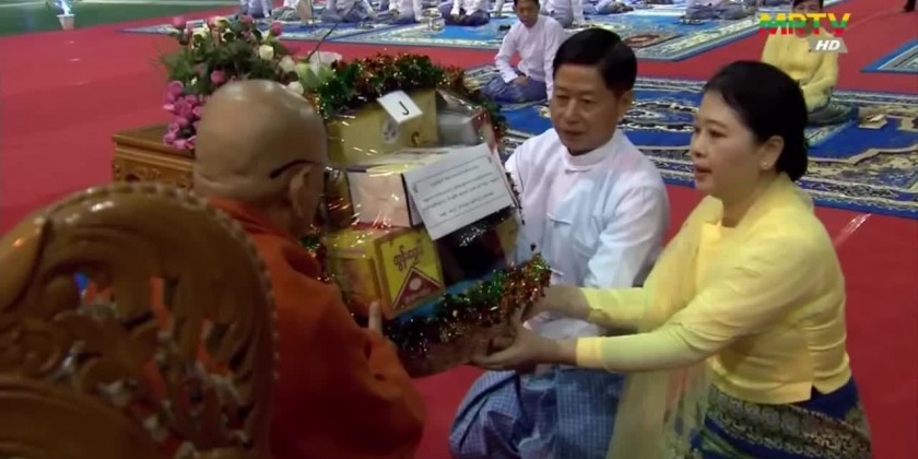 Vice-Chairman of the State Sangha Maha Nayaka Committee Presiding Sayadaw Bhaddanta Kovida of Sasana Wepulla Pali Tekkatho in Yanmyoaung ward of Meiktila administered the Five Precepts and members of the Sangha recited Paritta. Alms were donated to members of the Sangha, and the Sasana Wepulla Pali Tekkatho Sayadaw delivered a sermon, followed by sharing of merits. Later, members of the Sangha were offered dawn meals.